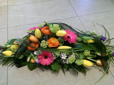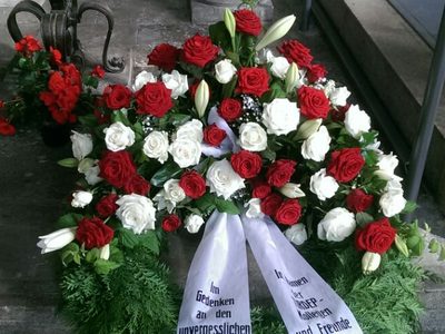 Blumenschmuck gilt heutzutage als elementarer Bestandteil der Trauerkultur. Im Trauerfall fertigen wir den individuellen Trauerkranz, Grabgestecke, Trauersträuße, sowie Trauergestecke in Herz- o. Sternform. Trauerschleifen bedrucken wir für Sie mit Ihrem Text, auch in kyrillischer Schrift. Lassen Sie sich in unserem Geschäft beraten. Hier finden Sie eine Auswahl an Trauergestecke, diese fertigen wir ab 50€.
